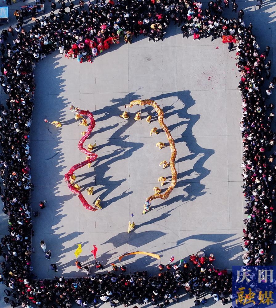 西峰區(qū)顯勝鄉(xiāng)社火隊表演舞龍。慶陽融媒記者 趙彩霞 攝