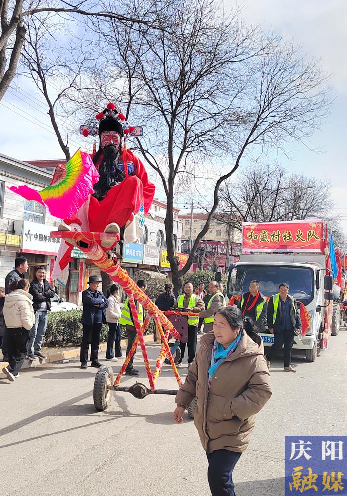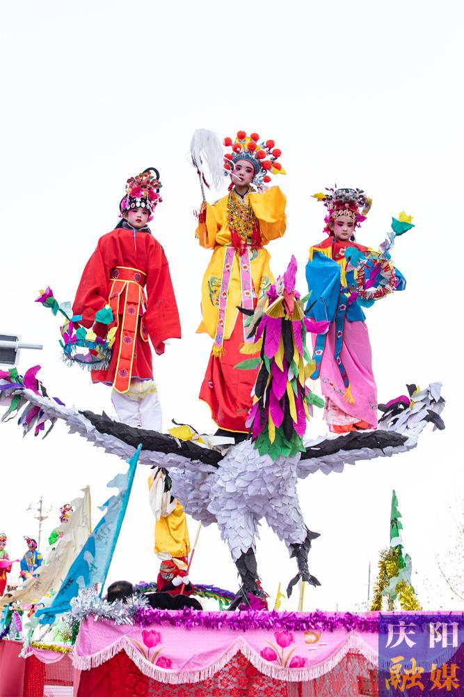 鎮(zhèn)原縣城社火踩街表演。慶陽融媒記者 田永昭 攝