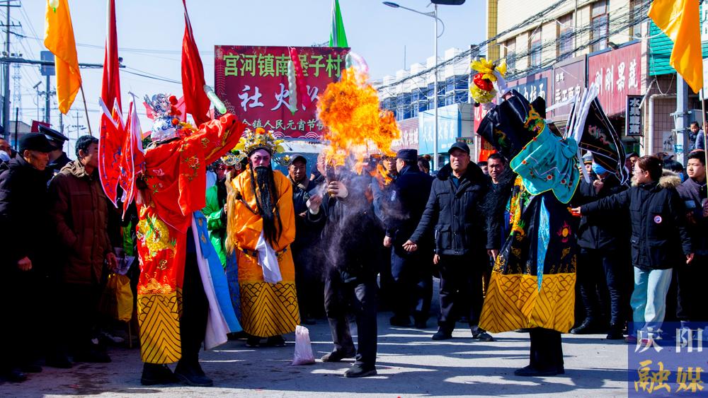 踩高蹺、耍獅子、劃旱船等傳統(tǒng)社火節(jié)目輪番上演,現(xiàn)場鑼鼓喧天,歡歌如潮。熱鬧喜慶的社火表演不僅營造出濃烈的節(jié)日氛圍,也展現(xiàn)了慶陽深厚的民俗文化底蘊。